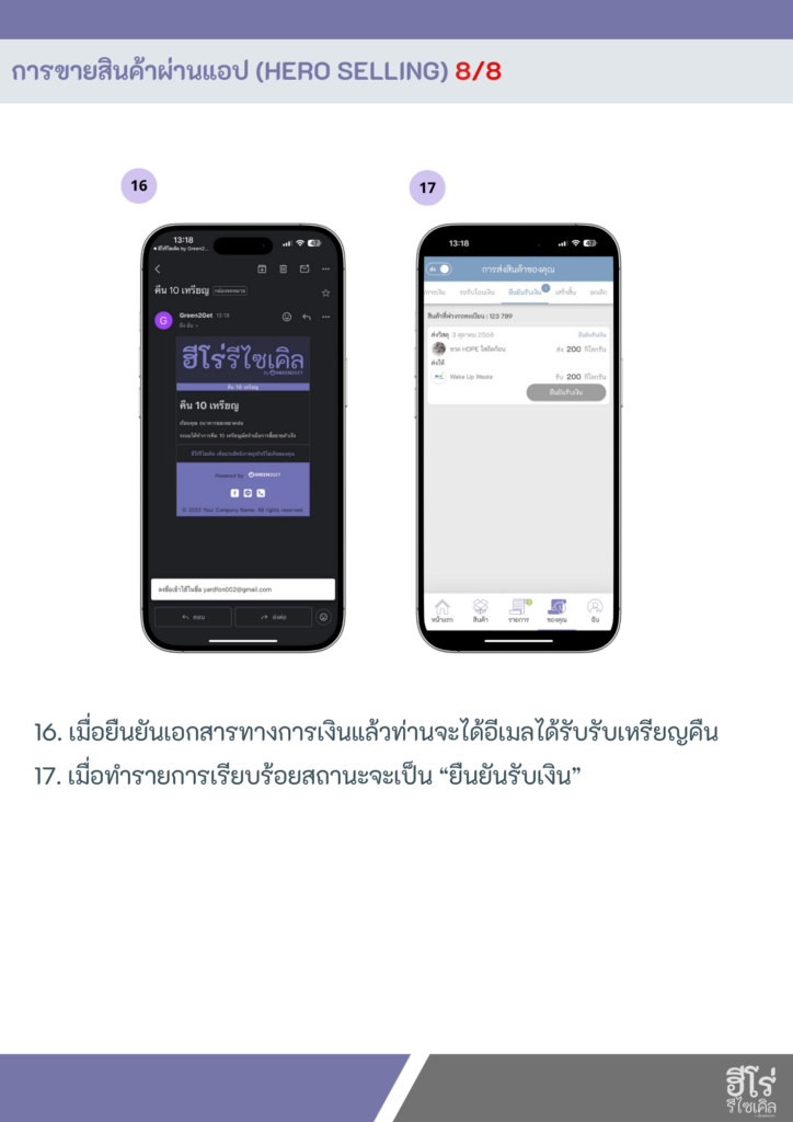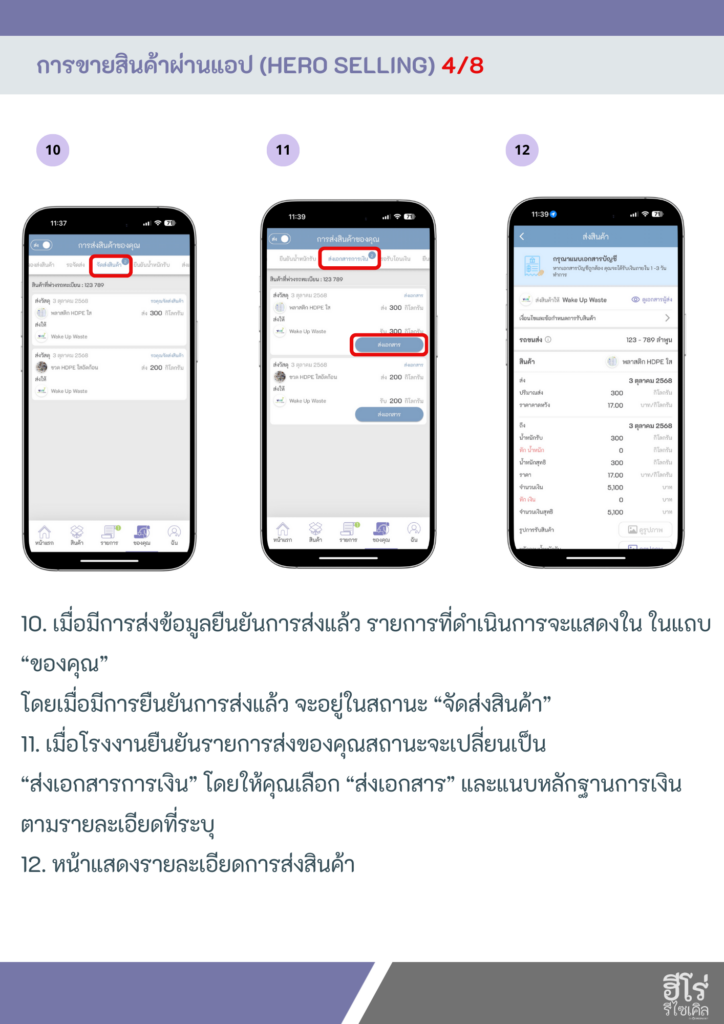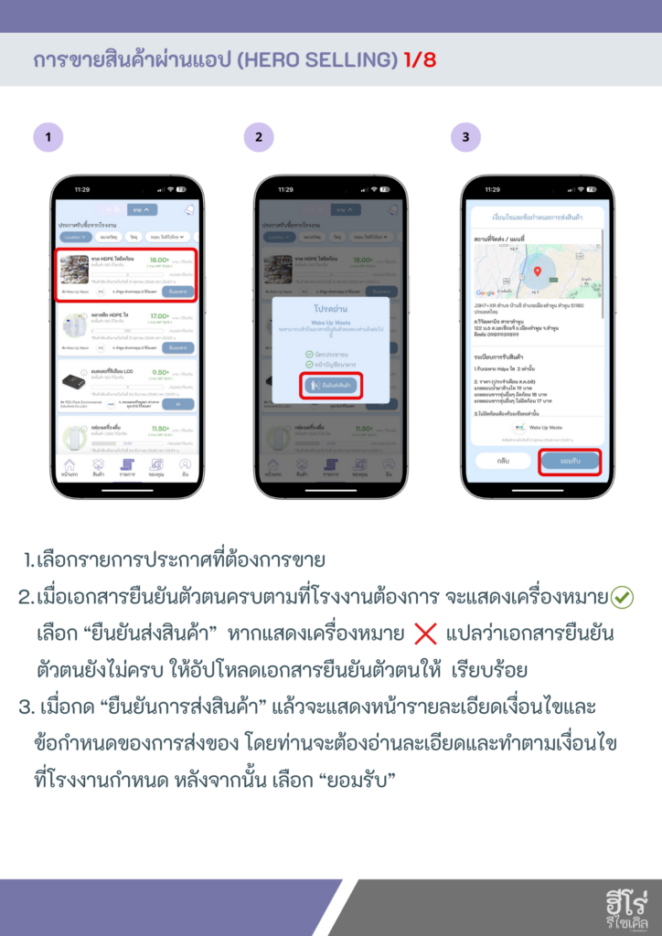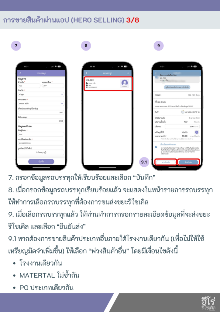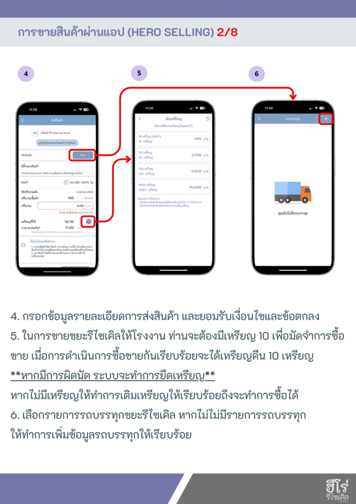 เป็นฟังก์ชันสำหรับร้านรับซื้อหรือรถรับที่ต้องการขยะรีไซเคิลให้โรงงาน โดยมีขั้นตอนการขายดังนี้