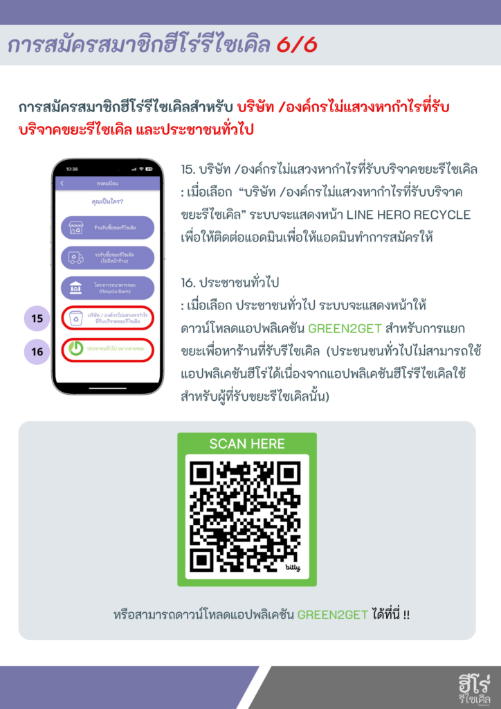 สามารถดาวน์โหลดแอปพลิเคชันฮีโร่รีไซเคิลได้ตามลิงก์นี้ https://onelink.to/mddwn
