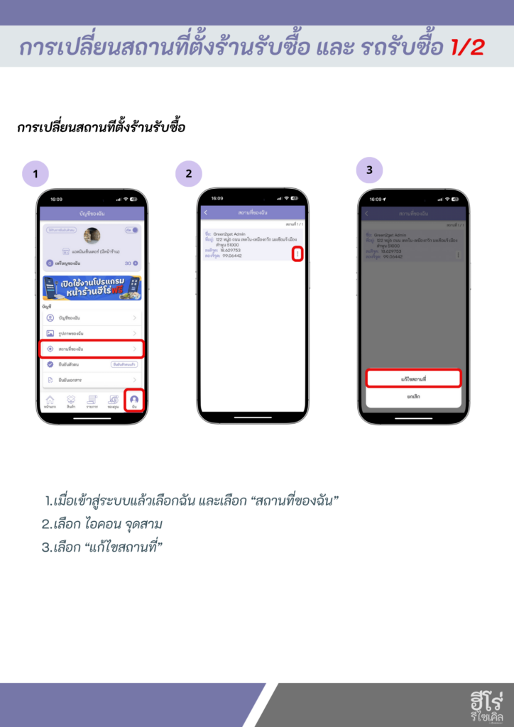การเปลี่ยนสถานทีตั้งร้าน / รถ